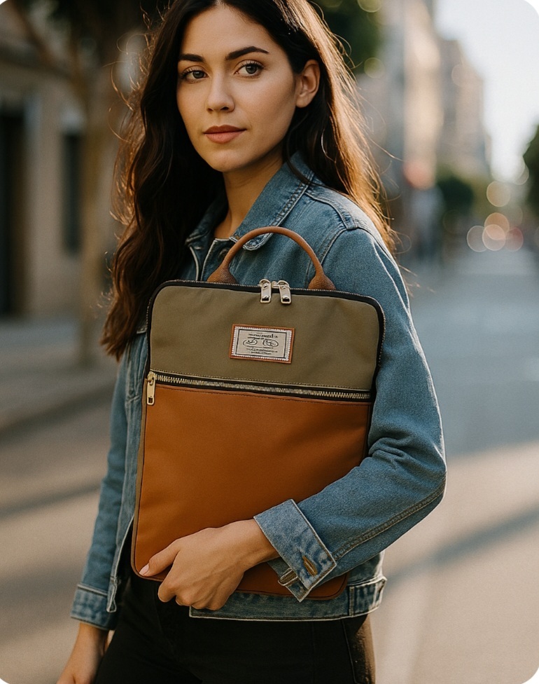 Genuine Leather-Trimmed polyester fabric Sleeve 15″